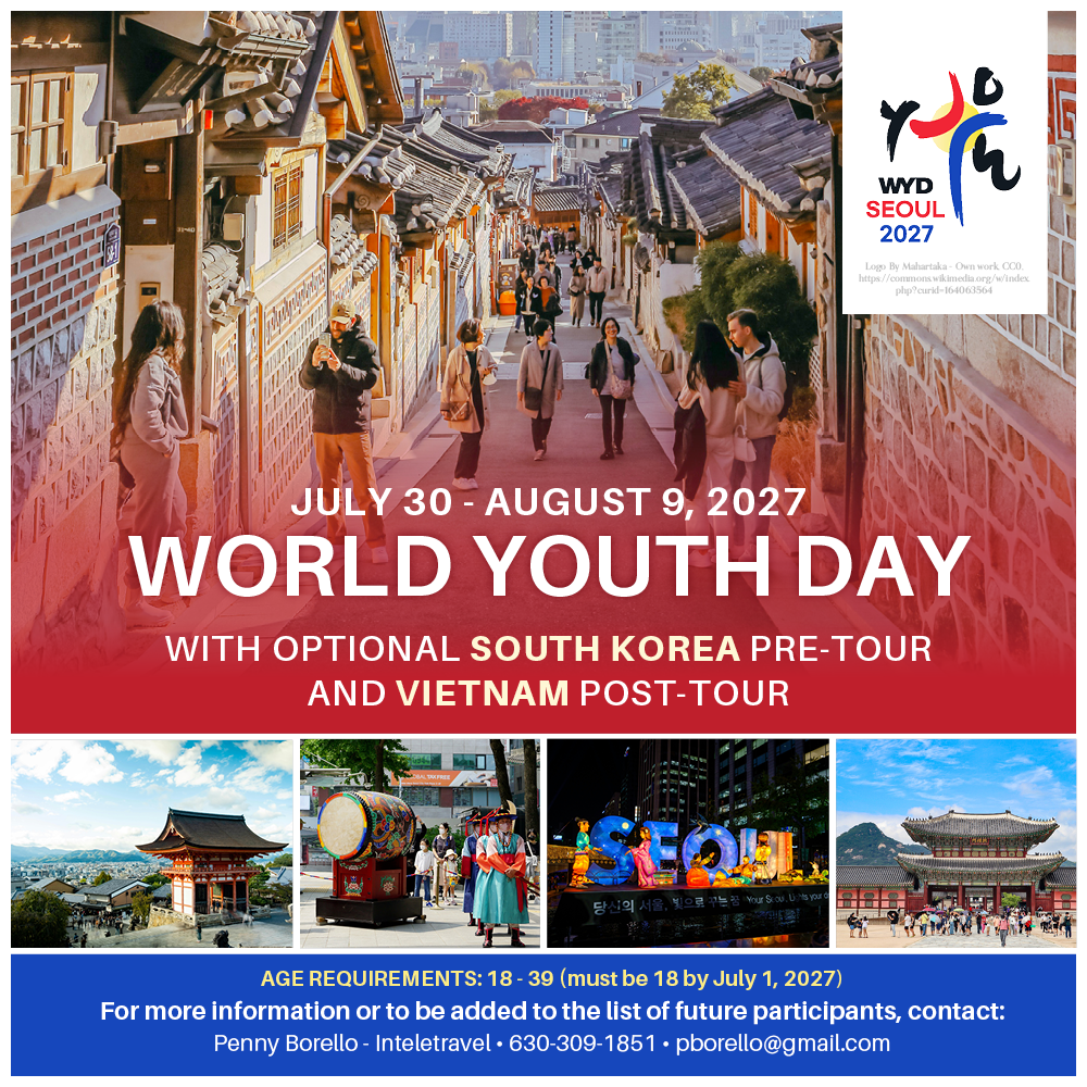 World Youth day is coming again in Summer of 2027 and we are going to Seoul, Korea!