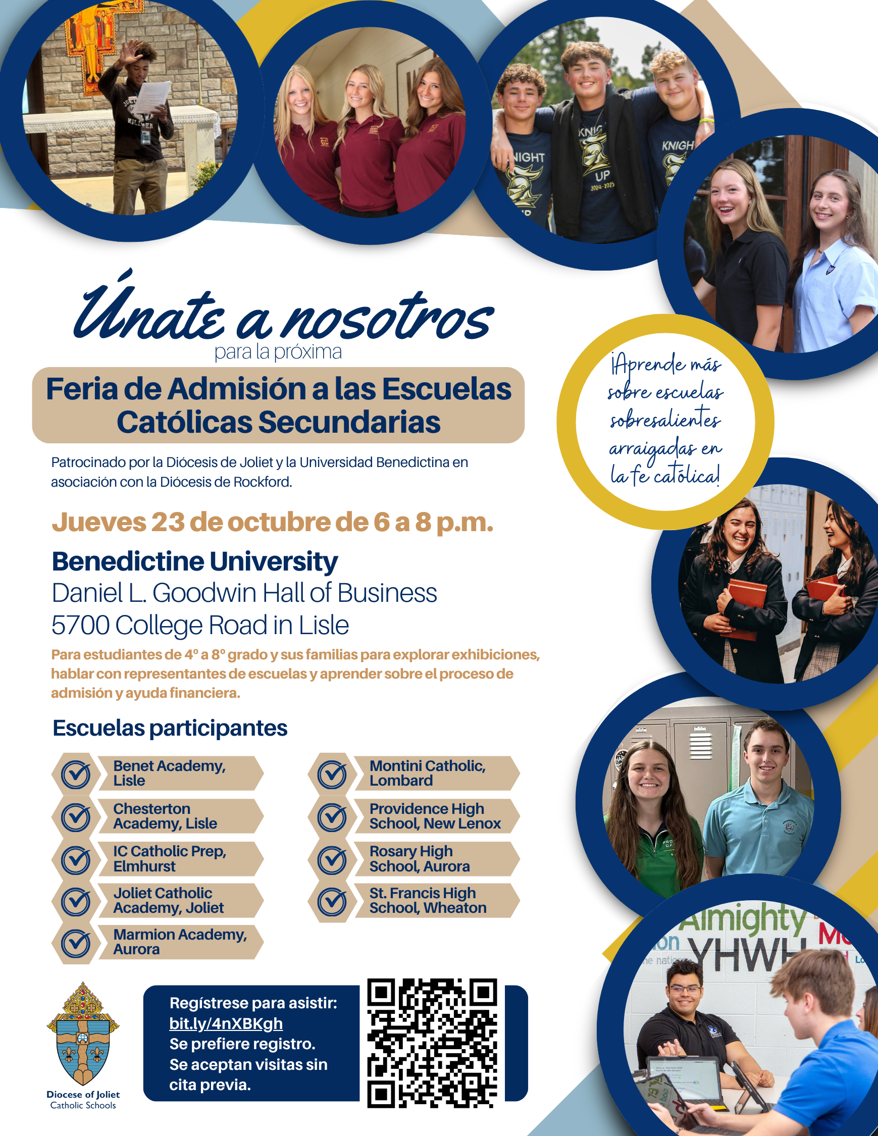 Sponsored by the Diocese of Joliet and Benedictine University in partnership with the Diocese of Rockford, students and families will be able to explore exhibits, speak with school representatives, and learn about the admissions process and financial aid.